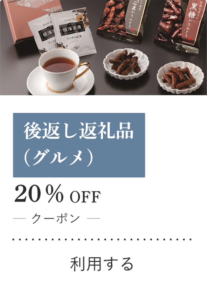• 後返し返礼品(グルメ)20%割引クーポン
