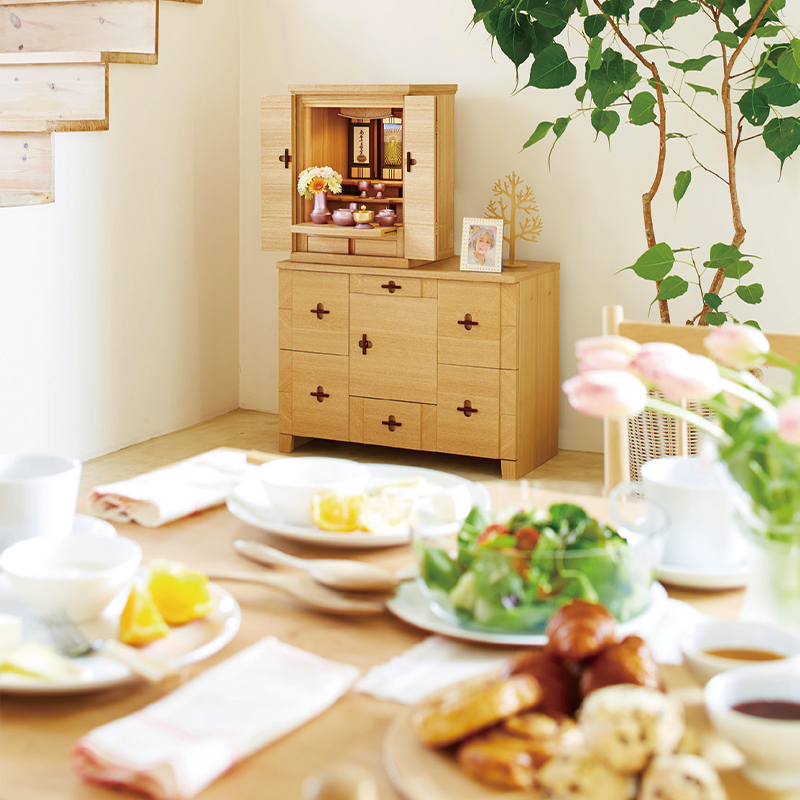 リビングやモダン仏壇にも調和するL版サイズ遺影写真入りフォトフレームです。故人様らしいデザインをお選びください