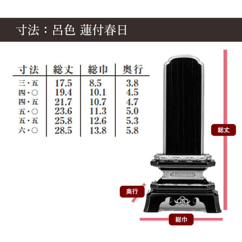 位牌のサイズは寸で表記しますが、これは文字入れをする札部分(札丈)の長さです。