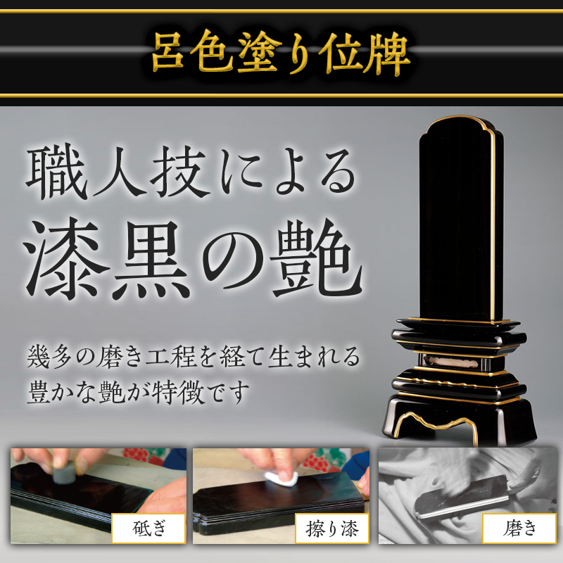 ● 熟練した職人技による豊かな艶呂色塗り位牌