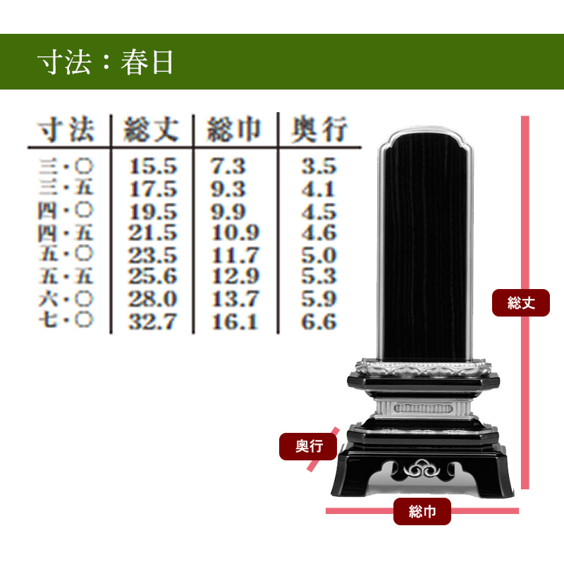 ただし、寸に関しては文字を入れる板部分のサイズの事であり、総丈ではないのでそれぞれのお位牌の