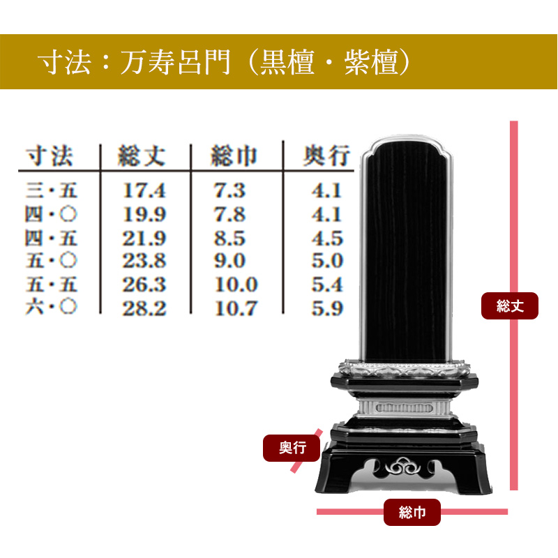 春慶位牌 万寿呂門(黒檀・紫檀)/5.5寸/