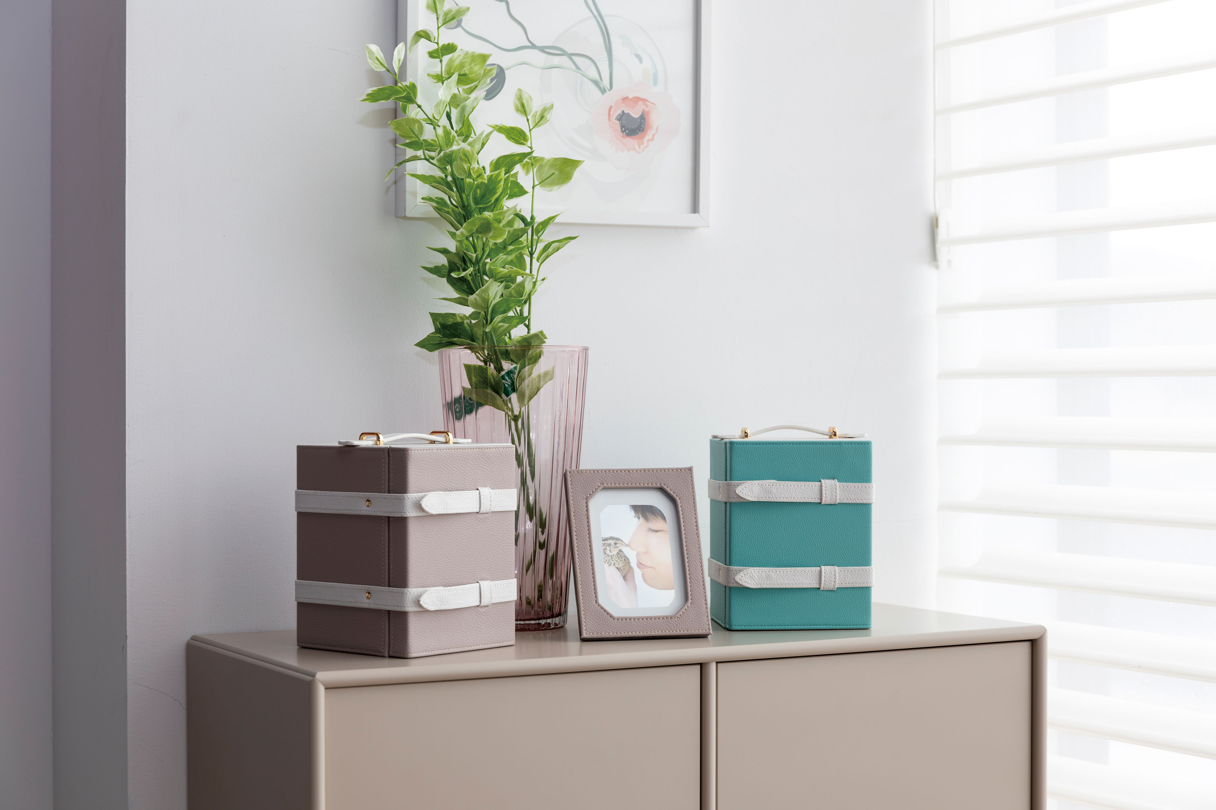 「楽しかった思い出をトランクにつめて、いつでも眺められるようそばに置いておきたい。」 そんな想いからトランクは誕生しました。 トランクの中には、大切なアクセサリーをかけることができ、時計などの形見のお品も大切に保管できます。 【サイズ】 高さ165mm×幅135mm×奥行130mm 【商品仕様】 ・材質:合成皮革 ・セット内容:フォトフレーム・骨壺・形見入れ・巾着 ・海外製
